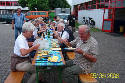 Am 4.5. Familientag bei herrlichem Wetter radelten wir (32 Radler) bis Kempen, hier machten wir einen kleinen Frühschoppen, danach radelten wir bis Grefrath zur Dorenburg-Freiluftmuseum. Im Pfannekuchenhaus machten wir Mittag, die Pfannekuchen waren vorzüglich. Danach machten wir einen Rundgang durch den Park und besichtigten das Spielzeugmuseum. Um 15:30 Uhr trafen wir uns und radelten Richtung Heimat. In Hüls gab es in einem neuen Bauerncafe (bei Helmut+Karin) zum Abschluß noch Kaffee und Kuchen. 4 Kuchen wurden gesponsert. Ein wunderbarer Tag ging zu Ende und alle waren zufrieden !
