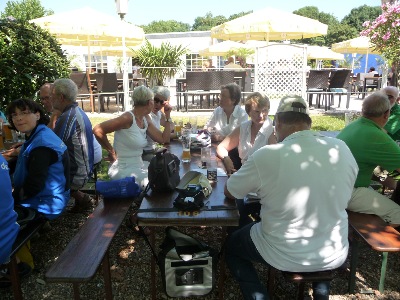 Dann ging es weiter zum Töppersee, hier saßen alle noch im Biergarten unter schattigen Bäumen.