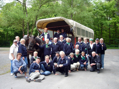 Wie es sich für eingefleischte Radfahrer gehört, begann der traditionelle Familientag der HSV Radsportabteilung am vergangenen Sonntag mit einer Fahrradtour. Bereits in Grefrath gab es die erste Pause mit einem herzhaften Imbiss, dann aber ging die Fahrt über den Hinsbecker Berg bis Leuth zum Gestüt Mayhof, wo bereits ein Planwagen mit Kutscher und zwei kräftigen Kaltblutpferden warteten. Mit reichlich Proviant und viel Gesang begann dann eine 4-stündige Planwagenfahrt rund um die Krickenbecker Seen. Neben reichlich Getränken gab es zur Stärkung eine Gullaschsuppe mit herhaften Einlagen, und am Ende noch im Leuther Bauerncafe der Familie Winkelmann Kaffee und Kuchen. Auf der Heimfahrt musste nätürlich wieder der Hinsbecker Berg überwunden werden, dann aber sorgte ein gnädiger Rückenwind für eine zügige Rücktour.