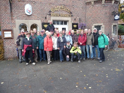 - am 31.10. Tagesausflug nach Münster , morgens Regen, aber im Zug war es trocken auch bei der Stadtrundfahrt in Münster. In der Gaststätte Krusebaimken stärkten wir uns, dann war es trocken und wir konnten unsere Wanderung rund um den Aassee starten. Herbstlich gefärbte Baume und Sonne machten es zu einem Erlebnis.