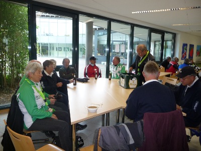 Trotzdem trafen sich 26 Radsportler und fuhren im Konvoi mit den Autos zum: " Gartenpark Borghof" in Tönisvorst, denn hier war alles für ein Grillen im Biergarten vorbestellt. Schnell wurde umgeplant, alle fanden Platz im Cafe und ließen es sich schmecken.