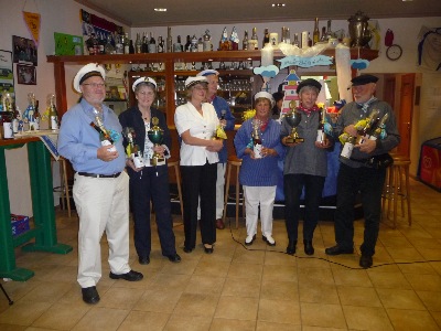 " Eine Seefahrt, die ist lustig....", unter diesem Motto wurde zur Jahresabschlußfeier am 6.11.10 eingeladen. Die Tischreien im Clubhaus Hölschen Dyk waren dementsprchend eingedeckt. Zahlreiche Mitglieder trafen sich zu einem unterhaltsamen Abend. Nach der Begrüßung folgte das köstliche Buffet, anschließend wurden die erfolgreichsten Radsportler geehrt. Das unterhaltsame Programm wurde diese Jahr aus den Reihen der Mitglieder gestaltet, so z.B. der " kleine Shanty-Chor", ein "Mädel vom Lande", eine witzige "Feinripp-Modenschau", und ein Tango-Vortrag. Zum Tanzen und Mitsingen erklangen neue und alte Schlager und Melodien rund um die Seefahrt. Es wurde viel erzählt und gelacht und man ließ das Jahr Revue passieren. Wieder einmal ein rundherum gelungener Abschluss der Saison.
