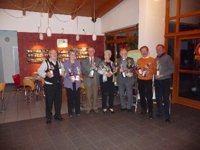 Es hatten sich 42 Personen dazu angemeldet, 20 davon trafen sich zu der Wanderung und wurden unterwegs mit Glühwein überrascht. Nach einem gemeinsamen Essen, wurden die Jahresmeister geehrt. Anschließend gab es noch einen leckeren Nachtisch, danach saßen alle noch in gemütlicher Runde zusammen und ließen den Abend ausklingen.