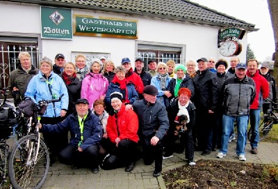 zur wieder eröffneten Gartenbau Vereins-Gaststätte " Weyerhof". Bei Grünkohl/Sauerkraut mit Mettwurst und Kassler ließ man es sich schmecken und radelte nach dieser gemütlichen Pause wieder in Richtung Hüls. Alle hoffen auf eine neue pannenfreie und vor allem " sonnige" Saison.