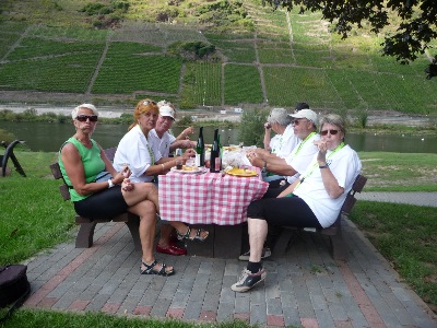Keinen Einfluß hatten sie leider auf das Wetter, denn nicht immer schien die Sonne. Dennoch war es eine schöne und gelungene Reise. Wegen der großen Abstände mussten Teilstrecken mit dem Zug zurückgelegt werden., so z.B. am ersten Tag von Dormagen bis Birgel in der Eifel, wo zwei Tage in Birgel und zwei Tage in Kordel eingeplant waren, u.a. durch das schöne Kylltal. Den größten Teil der Tour wurde an der Mosel geradelt. Von Konz bis zur Mündung in Koblenz schmeckte der Moselwein und auch der Federweiße. Der letzte Tag war für den Rhein auf Fahrradwegen von Koblenz bis Linz vorgesehen. Vom Bahnhof Linz brachte schließlich die Deutsche Bahn die Gruppe samt Rädern und Geüäck zurück nach Krefeld, im Nordbahnhof gab es dann noch mit einem Abschlußessen einen kleinen Rückblick.